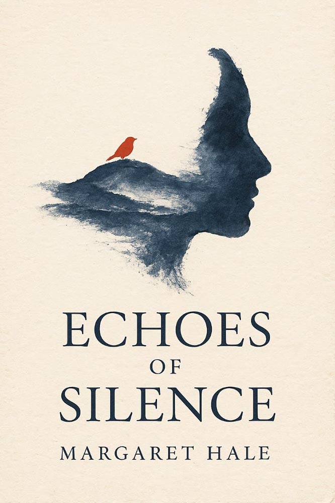 The prompt: “Design a literary fiction cover for ‘[Title]’ using a single continuous brushstroke that forms both an abstract landscape and a human profile when viewed differently—an optical illusion revealing loneliness and connection. Executed in indigo ink wash on cream paper texture. The brushstroke starts thick and confident, becoming increasingly fragmented and uncertain. Minimal color palette: indigo, cream, with one tiny spot of cadmium red as a focal point (perhaps a bird or flower). Title integrated into the negative space using a classic Garamond variant, appearing to be part of the original artwork. Author name in small, understated caps at bottom. Overall feeling: wistful, sophisticated, gallery-worthy.”