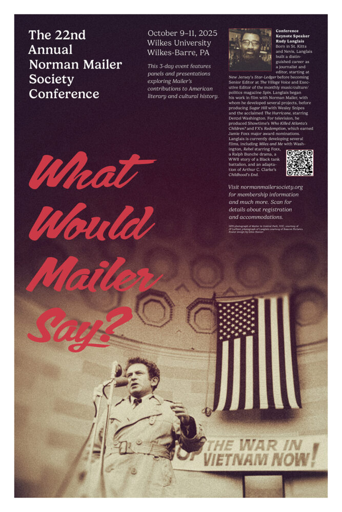 The poster for the Norman Mailer Society’s 2025 Conference. Good stuff. Thanks to them for the continued work together on interesting projects.
